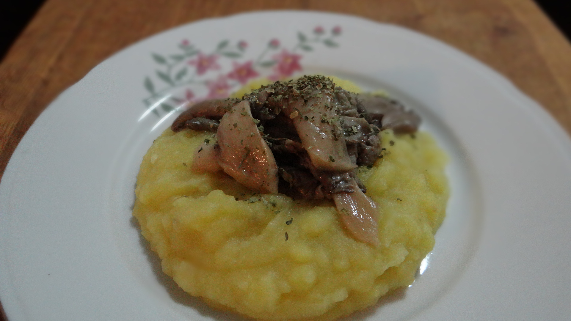 Here’s what we had for dinner yesterday. The mashed potatoes are my mom’s invention and the taste – phenomenal! I really can’t get enough of oyster mushrooms cooked this way (OK, I admit, for a certain period of time, then I have to have them in some other way – preferably greasy :)). So not vegan of me, right?