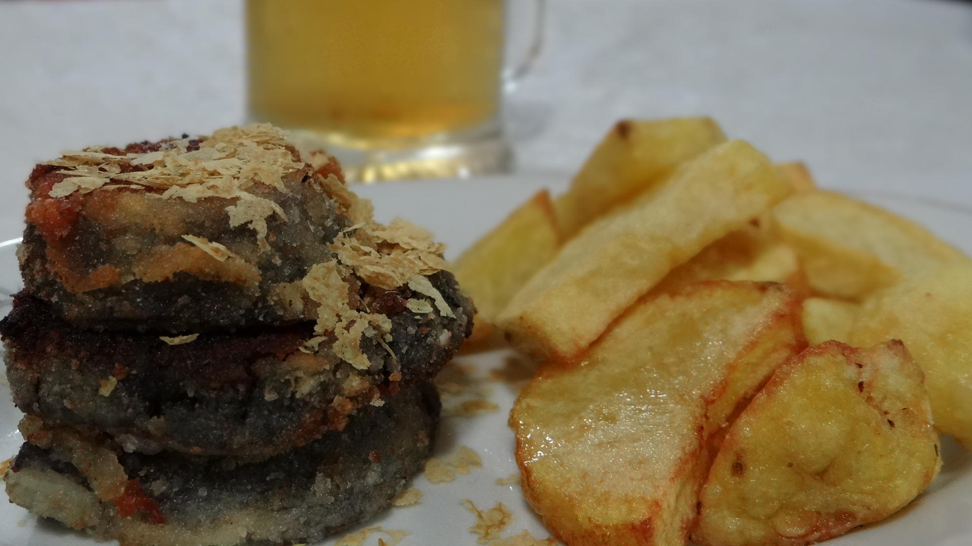 Патем, во овој рецепт со модрите ја користам истата смеса за панирање што другарка ми ја користеше за шницлите. Обожавам модри, а М обожава помфрит – за секого по нешто.