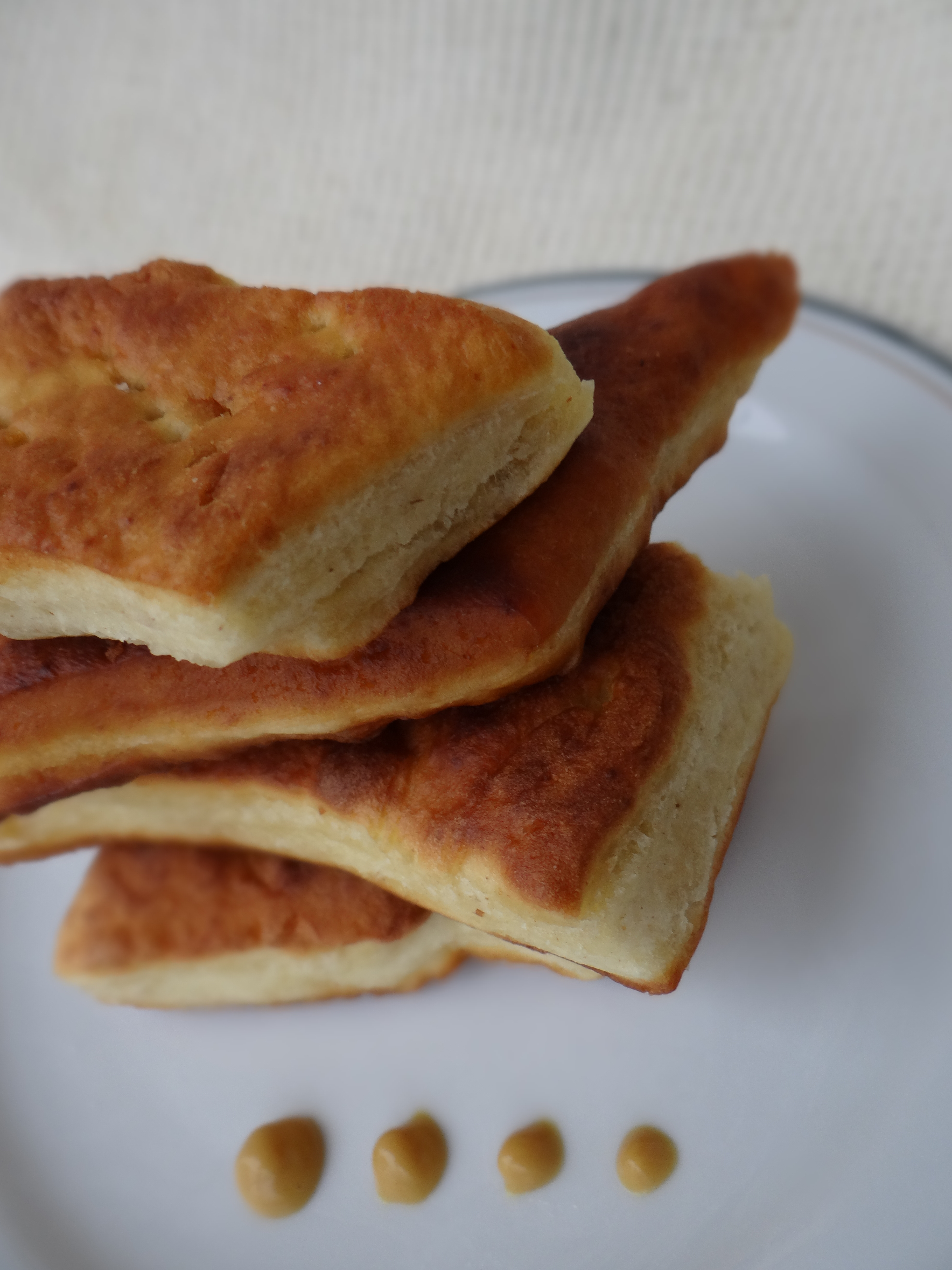 Рецептот што го најдов се прави со обично сенаменско брашно (тип 400), ама јас ставив тип 500. Ова брашно почнав да го користам поради машината за леб што ја купивме – само со такво брашно се рецептите. Освен тоа, еднаш одамна направив палачинки со ова брашно и М во несвест падна од убавини. Оттогаш најчесто тоа брашно го користам во рецепти. Морам да признам дека на почетокот ми изгледаше страшно – тестото ми беше тврдо, почнав да се нервирам, ама кога ја пробав првата пишија се убив од радување. Првпат правам пишии, досега само баба ми ја имам гледано како ги прави и не ни знам од што ги правела. Браво за мене 🙂