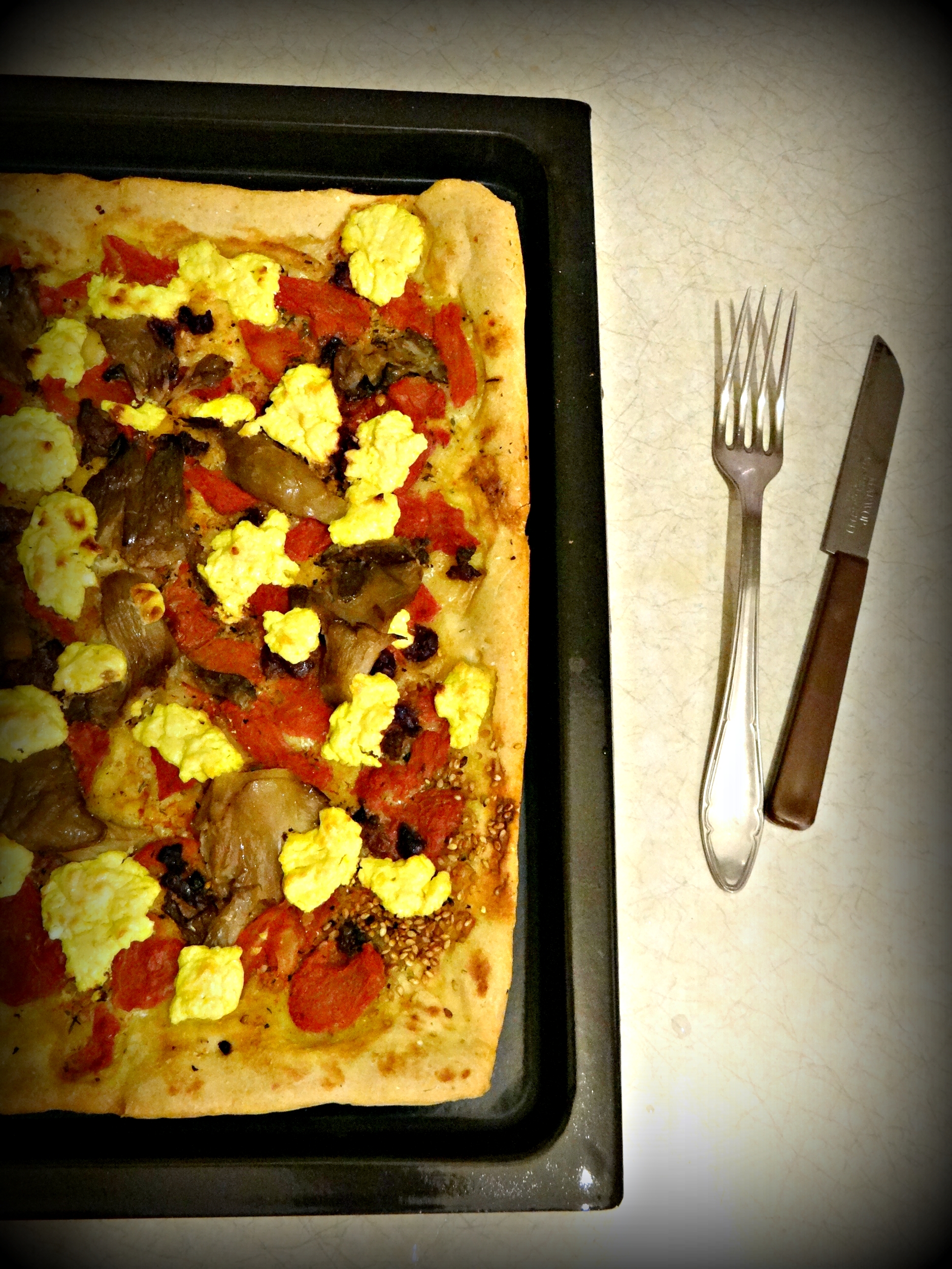 Tip: I used the one part of the dough to make pizza, and the other to make something that resembled a French flaky tart. My next recipe is using the same dough but a different topping. In this way if there’s two of you – you get a meal and a dessert. Swell, right? 🙂