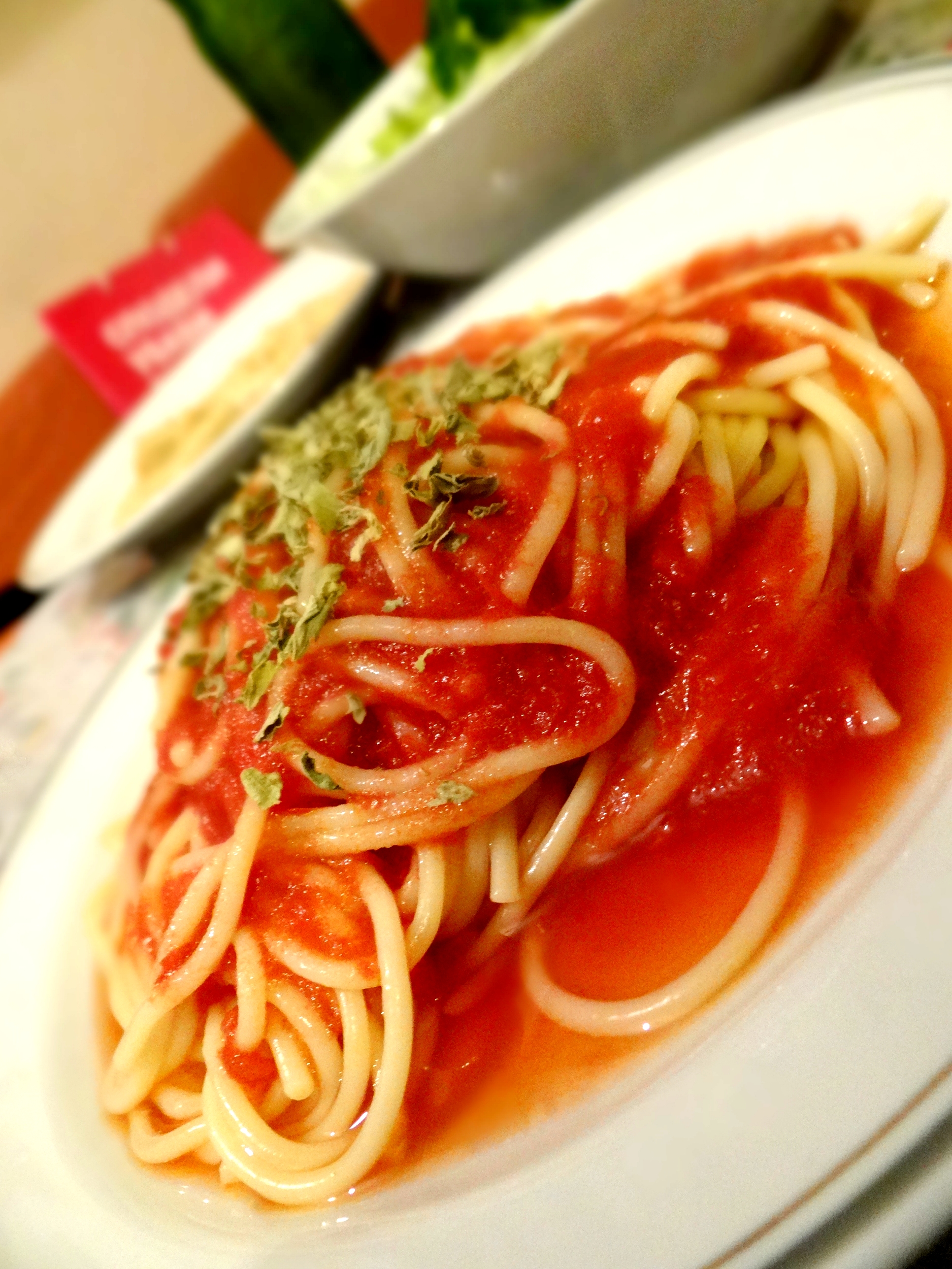 Prepare the spaghetti according to package instructions. Make them al dente. Heat the tomato sauce a little bit so your spaghetti won’t get instantly cold if you add it straight from the fridge. Sprinkle some basil over (you can also use nutritional yeast if you must) and serve right away. Btw if you already plan on ‘ruining’ it with nutritional yeast, dried tomatoes would be a great addition too.